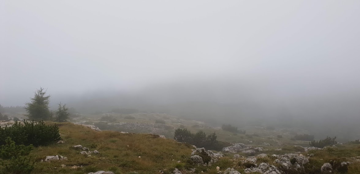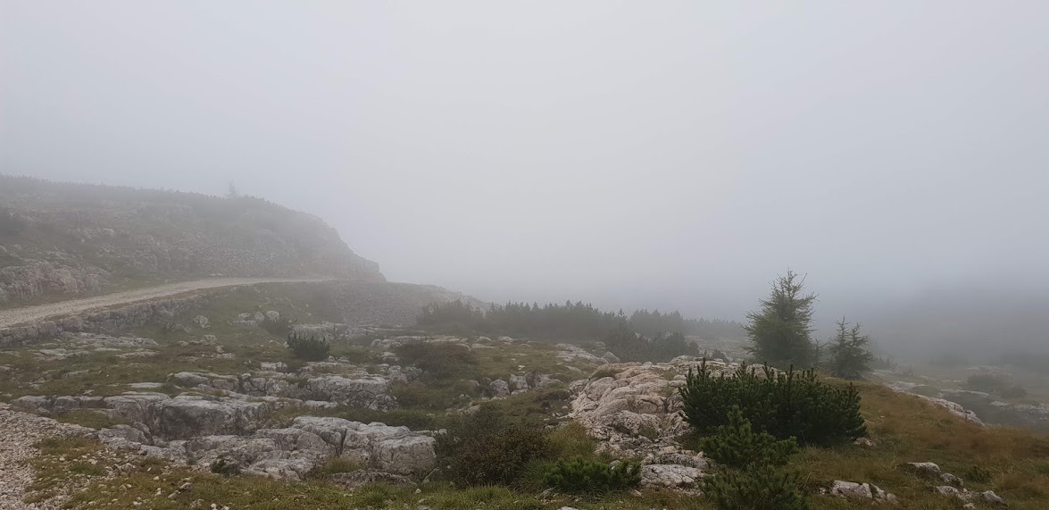 Non saprei raccontare km per km quello che mi è accaduto ma ricordo che in alcuni punti non si vedeva niente. Abbiamo attraversato decine di trincee che cento anni prima furono teatro di sanguinose battaglie. Ancora oggi ripensando a quegli attraversamenti ho i brividi, la pelle d’oca. Mi sono fermato qualche minuto all’interno di una galleria per riposare dalla pioggia e cercare di cambiarmi la maglietta visto che la temperatura era in ribasso ma ho fatto 2 errori: